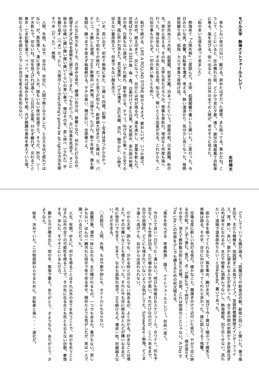 モビル文学 熱海ナイトフォールエレジー志村翔太